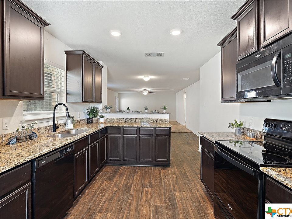 - All Bedrooms Down, Granite Counters, Primary Downstairs, Main Level Primary, Open Floorplan, Pull Down Attic Stairs, Walk-In Closet(s), Breakfast Bar, Kitchen/Family Room Combo, Pantry