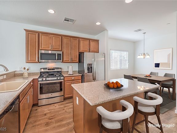 Discover this 4-bedroom, 3-bathroom two-story home perfectly situated in the highly sought-after newer Northwest Las Vegas area, just minutes from convenient freeway access, shopping, and dining. Freshly updated with brand-new interior paint, this move-in ready home comes complete with all appliances included. Light fixtures and ceiling fans are found throughout, and the spacious laundry room offers extra storage. The 2-car garage is generously sized, built-in shelves, & high ceilings for added convenience. The primary suite showcases stunning west-facing views of Mount Charleston, creating a serene retreat. Tucked away at the end of a cul-de-sac, you’ll also enjoy a fully finished backyard featuring a paver patio, turf, and mature vegetation—all designed for easy, low-maintenance living. Don’t miss this rare opportunity in an ideal location!