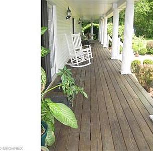 Winding driveway meanders down to plantation-style home w/wonderfully wide covered porch wrapping 3 sides, + rear screen porch, all allowing panoramic vistas of gorgeous property. Tranquil pond w/aerator accounts for 1 of 7 scenic acres w/additional woods & Cuy.Valley Nat'l.Pk nearby. Master suites on 1st & 2nd flrs permit flexibility. 2 more vaulted bdrms, full bath on 2nd. 2-story foyer features grand wall for artwork, leads up to spacious loft or down to 3-rm lower level that incl. media rm, library & office. Great rm features angled walls of windows to view pastoral setting. Formal dining rm & white eat-in kit. w/walk-in pantry & lge laundry/mudrm completes 1st flr. Wired for surround sound. Have a classic car collection, recreational vehicles, massive tools, other toys? You'll love 50 x 30 storage barn w/concrete flr, boasting 7 bays & huge loft. Highly efficient geothermal heating/cooling. Add'l living space above 3-c. att. garage. Country living w/abundant wildlife at its best!
