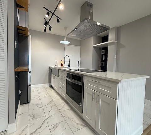 Trendy fixturesFloor to ceiling windowGenerous sized bedroomNatural sunlightQuartz countertopLaminate flooringTiled flooring
