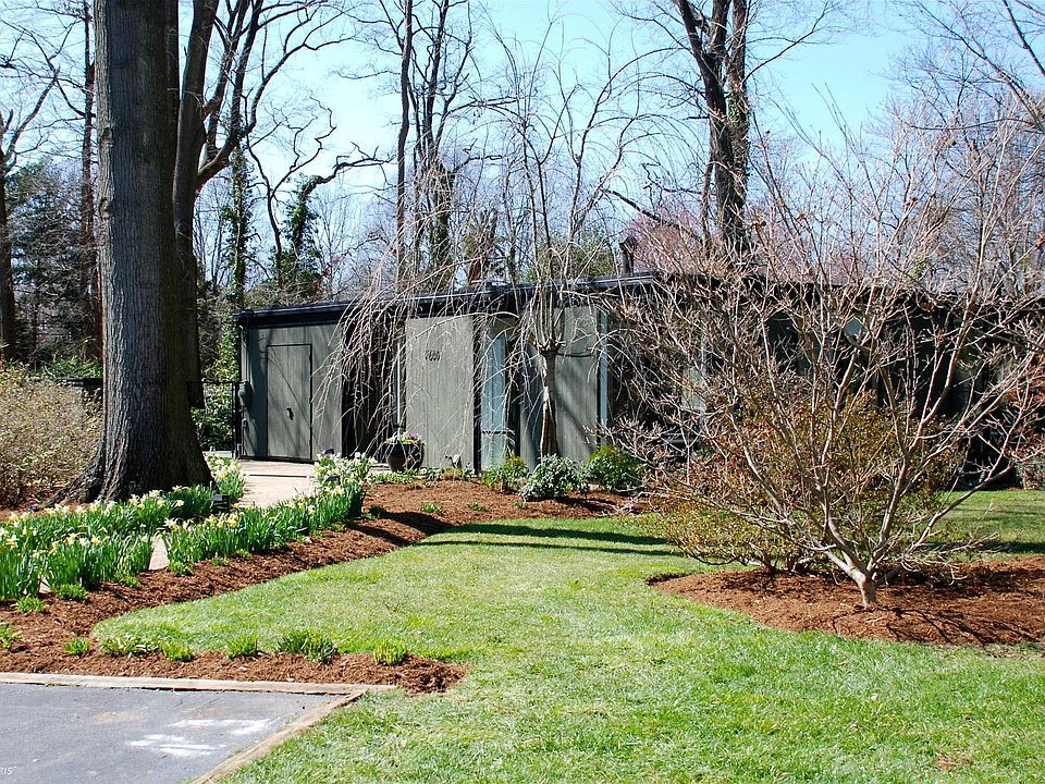 Stylish one-level expanded Goodman contemporary has 4 bedrooms, 3 renovated full baths with tranquil master suite, sunny family room/dining room and huge living room. Many updates: windows, flooring, bathrooms. Walls of windows overlook a spectacular yard, with decking, extensive landscaping, and fencing. Private backyard path to Hollin Meadows Pool.