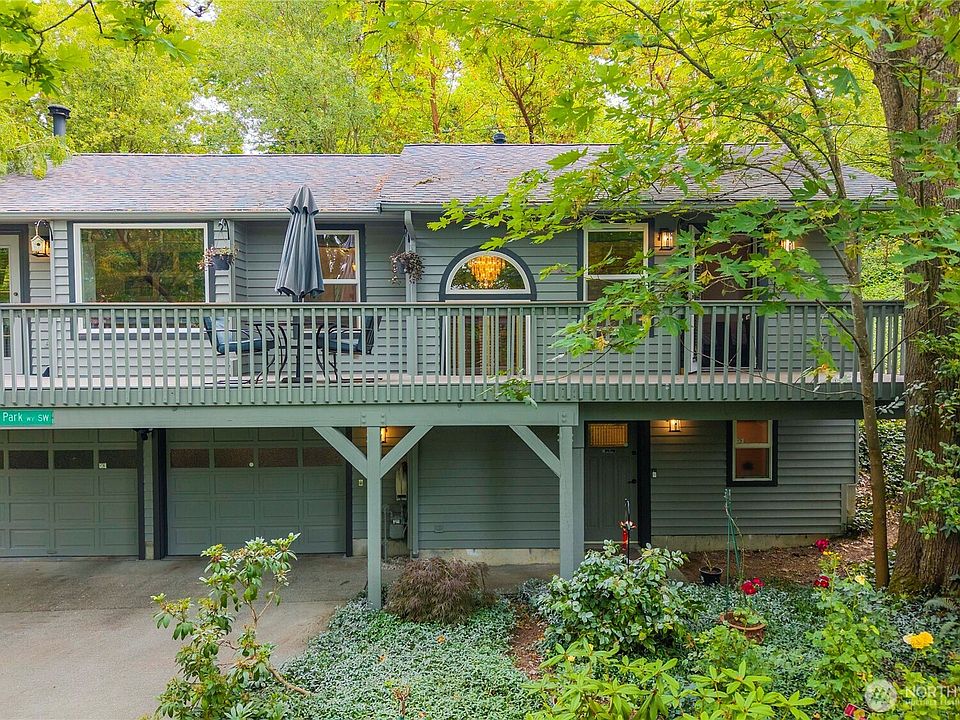 Thoughtful updates and low-maintenance yard make this West Seattle 2-bed, 2-bath home move-in ready. Vaulted ceilings and large windows create a bright, open feel, while the refreshed kitchen features new cabinets, quartz counters, & skylight. Enjoy morning coffee on the expansive front deck or host friends on the inviting covered deck off the dining room. The primary suite includes walk-in closet & remodeled bath, plus a versatile 2nd bedrm, full bath, & rare full-size 2-car garage on the entry level. Add'l updates include new 30-year roof, gutter guards, new flooring, and fresh paint inside/out. Generous spacing between homes enhances privacy, and the location offers quick access to freeways, the airport, downtown, and the Transit Center.