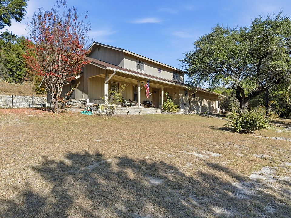 this unique property features an attractive rock and siding exterior, with covered porches, a bright open-concept living and dining area complimented with plenty of natural lighting and room to entertain guests and host family get togethers.