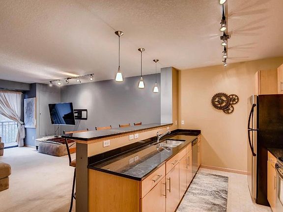 Convenient location and many amenities. Kensington condo has gym facility, large common room with full kitchen, projection screen, and fireplace. Unit features granite counters, open concept, balcony, in-unit washer and dryer, and separate storage room. Includes assigned parking spot in heated underground garage.