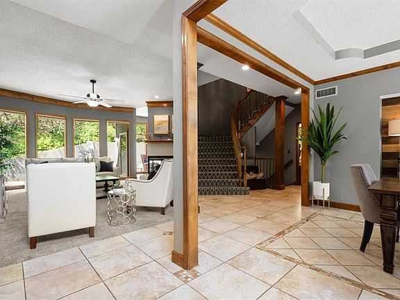 Looking for more space? How about more than 4,100 sf of living space on a nearly 3/4 acre lot? This spacious 1.5 story home features 5 bedrooms and 4.5 bathrooms including a fully finished walkout basement. Situated on a corner lot in Maple Park Place, you'll enjoy views for days from nearly every room. Home backs to a hill giving you privacy on the spacious back deck. The large side yard provides ample outdoor space, but if you're looking for more...there's Maple Woods Natural Area with hiking trails right across the street. Inside, you'll find a main floor ideal for entertaining with a formal dining room, living area with a two-way fireplace shared with the hearth room. There's also the stunning updated kitchen with ample storage and a breakfast area that overlooks the deck and wooded hill. Also on the main floor is the laundry room, half-bath, and the primary bedroom with en suite. The updated en suite has dual vanities, ample closet space, separate shower and oversized tub with another two-way fireplace. Upstairs, there's a bedroom with private bathroom great for guests. You'll also find a loft with built-ins and two more bedrooms as well as a shared bathroom. The basement is another great entertaining space with a huge rec room with built-ins, the 5th conforming bedroom, full bath, a bar with a wine or tech room which is also accessible from the incredible media room. And yes, this home is on a hill, so the driveway is steep, but there's a large 3-car garage and space for additional parking alongside the garage. Neighborhood includes a community pool. This one is a must see!
