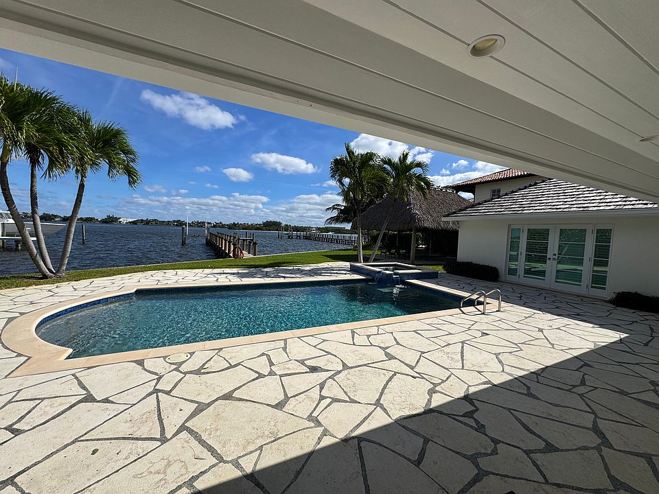 Beautiful 4-bedroom, 5.5-bath waterfront home along the West Palm Beach Intracoastal. Features include a private dock with boat lift, pool and jacuzzi, spacious backyard with a chickee hut, and open living areas with water views throughout. Perfect for boating enthusiasts and those seeking comfortable coastal living.