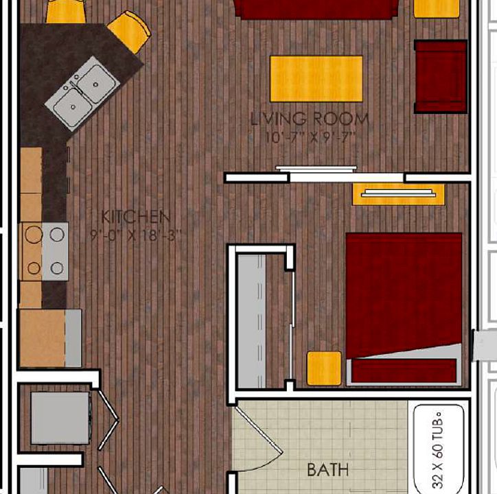 Beautiful studio apartment with separate sleeping area. Plenty of storage! All apartments include washer & dryer.