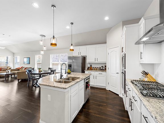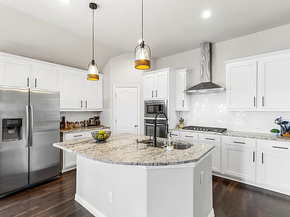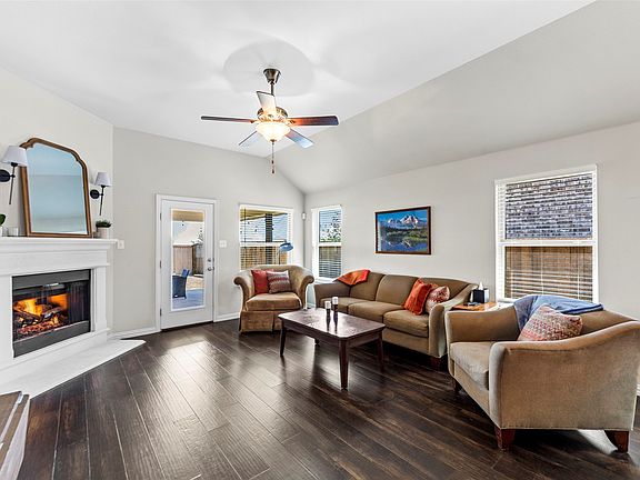 FABULOUS ONE STORY Highland Home that BACKS TO SWEETWATER PARK in the coveted Trinity Falls Community with all the resort-style amenities - No neighbors behind you! Great floorplan with 3 bedrooms, 2.5 baths & a great 2nd flex living space - Perfect for a private office, playroom or 4th bedroom. Beautiful rotunda entry way with tray ceiling says 'Welcome Home'. Kitchen with large island, gas cooktop, stainless steel appliances and walk-in pantry. The flow of the kitchen, dining, and living room makes this home perfect for entertaining guests! Beautiful engineered wood floors throughout the main living areas in the home. Large living room with gas fireplace with views of your private yard & patio. MASSIVE primary suite with large sitting area - great for potential office, dual walk-in closets, and spa-like ensuite bath with subway tile features, granite counters & walk-in shower. Split bedroom floorplan for additional privacy. Secondary bedrooms feature walk-in closets and overlook the yard. Additional half bathroom for guests. Backyard features a large covered patio and great yard space - perfect for pets or play time. Located in Trinity Falls, enjoy all the amenities including pools, parks, trails, disc golf, and more. With easy access to Hwy 75, Downtown McKinney, shopping, and dining, this home is a must-see! 220V plug in the garage for electric vehicle charging! Whole-home surge protector.