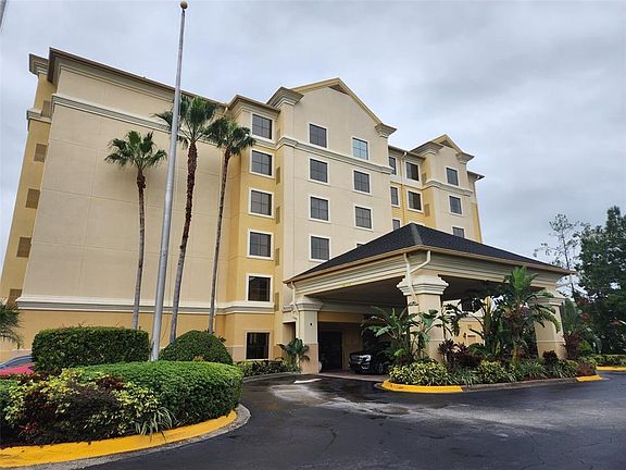 Fully furnished with water, power, internet, & basic cable. Available now. 1 bed, 1 bath condo located on the sixth floor of the StaySky Suites. The condo has a combined living room and dining area, and the open floor plan offers space for residents. Short-term rent. This comfortable suite includes water, electricity, basic cable, and internet services. It is conveniently located at a condo-hotel one block away from International Drive, just 4 minutes away from Universal Studios and Islands of Adventure and Volcano Bay, supermarkets, bus stops, restaurants, pubs, gas station, nearby Premium Outlets, and 15 minutes away from Disney World. Access to the pool, gym, game room, business center, bar, etc. Available now!
