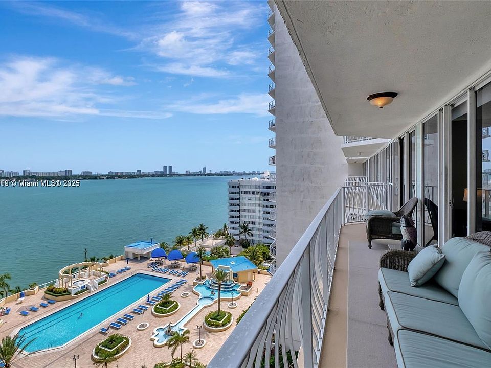 Florida living at its best! Stunning Biscayne Bay views from this beautifully remodeled 2BD/2BA with spacious split floor plan and balcony access from every room. Features wood-grain floors, crown molding, two Jacuzzi tubs, granite kitchen with SS appliances, remote blinds, new A/C & water heater, and front-load W/D. Move-in ready, optional furnished. Full-service bayfront building just 2 miles from the beach with concierge, 24-hr security, Olympic pool, Jacuzzi, sundeck, marina with dock-master, 2 covered parking spaces, and ground-floor restaurants, salon & market.