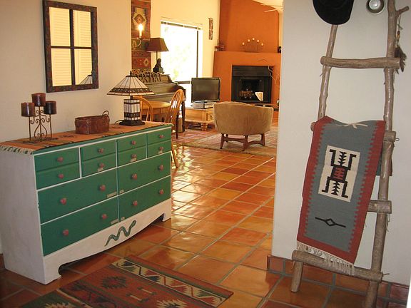 "The Cactus Villa," is fully furnished and tastefully decorated in Southwestern/Mexican decor, with artsy and eclectic designer touches, and authentic Mexican Saltillo tile flooring throughout. Saltillo tiles are a product of the earth and through their natural rustic beauty radiate energy, warmth, and peace. Tile flooring is also more sanitary, easier to keep clean, and therefore healthier than carpeting, especially in bedrooms, as it provides a low allergen environment for persons with allergies.