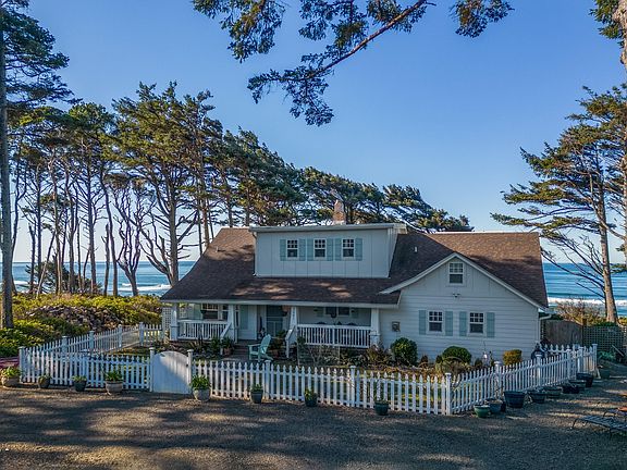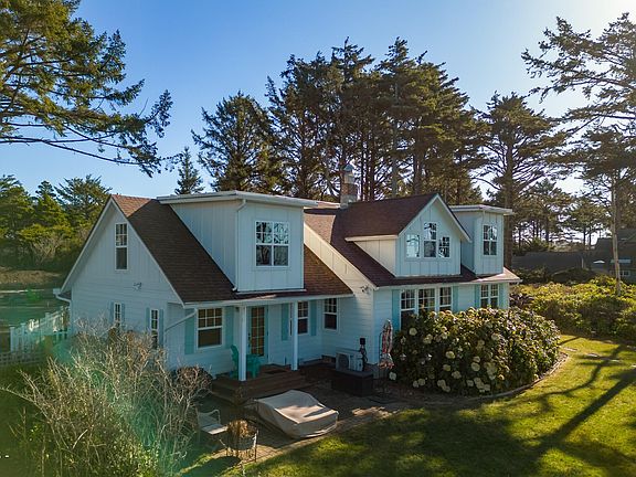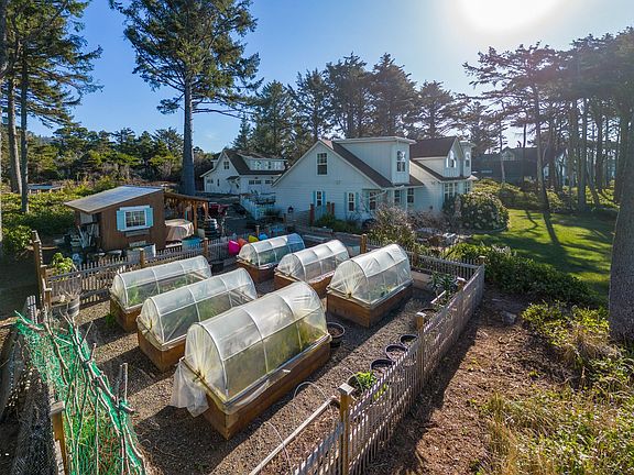 Watch the Video and Witness the wonder and majesty from this OCEAN FRONT home on 2.49 acres, outside Tsunami Zone with Ocean and LIGHTHOUSE views. The magic and memories begin beyond stone pillars with gated entrance where you will find 1938 updated cottage offering amenities for the sophisticated luxury buyer. There is a modern kitchen with double ovens, marble counters & backsplash, induction cooktop, walk-in pantry, and hardwood floors. Brick fireplace quaint Dining Room Master-on-Main walk-in closet, all bedrooms with ocean views. Garden year round in fenced garden area with 14 Raised Beds, 7 fruit trees, a blueberry hedge, English roses bloom along the picket fence. Carriage style 4-Car Garage with a heated workshop and finished loft/office has incredible Ocean Views! WATCH THE VIDEO