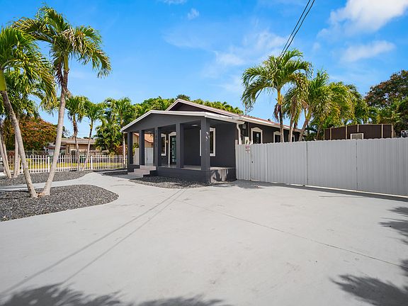 Walk into this fully remodeled modern home with impact windows and doors. Porcelain tile throughout the house, brand new acrylic kitchen cabinets. Quartz countertops with a waterfall, all new white glass Samsung kitchen appliances. Fully remodeled main bathroom. Main bedrooms have custom closets with pullouts. Walk into the second part of the house where you'll find a living room with a kitchen, an additional bedroom and a bathroom. This area can be closed off and used as a separate area of the house. Great rental opportunity! It already has it's own private entrance. Walk outside to the large patio space with tons of room for storage, a covered area for an outdoor kitchen or gym, and a detached studio in the back 1/1. Great investment opportunity. This house can be rented in three parts.