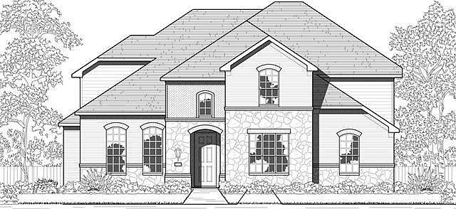 MLS# 13304273 - Built by Highland Homes, LTD - February completion! ~ Stone elevation, hard wood flooring, Silestone countertops, wrought iron balusters, sheetrock rounded corners, wood beams in study,