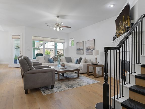 Cozy brick fireplaceCharming architectureCharming balconyGenerous lotExpansive windowsNew flooringSerene backyard views