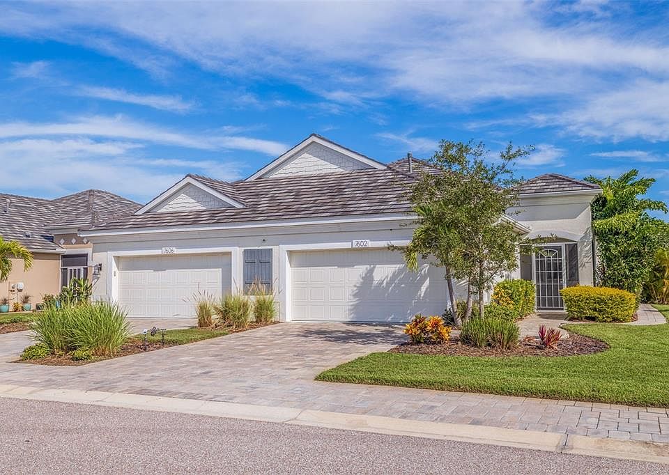 University Village - Tucked away in a serene gated enclave known for its meticulously maintained homes lies this 2020 Medallion masterpiece. Boasting 1,579 sq. ft. of elegant living space, this home is a harmony of innovative design and luxurious finishes with 2 bedrooms, 2 full baths and an Office or Den. The entrance, graced by a large screened-in front patio, leads to interiors adorned with high ceilings, and large-tile custom floors. The heart of this residence is undeniably its spacious great room, enhanced by a lighted coffered ceiling and triple glass doors which fluidly slide open, creating a harmonious indoor/outdoor ambiance. Step out to enjoy the neighborhood's most expansive screened-in back patio, offering soothing views of a pond, spa, and breathtaking sunsets. (new Jacuzzi spa will convey to the buyer) For those with culinary inclinations, the kitchen serves as a dream. Gray and ivory granite countertops are complemented by custom gray cabinetry equipped with pull-out drawers and shelves. Not to be overlooked is the stunning blue glass subway tile backsplash, coordinating charcoal-tone stainless steel appliances, and a range with a double oven. Further, the kitchen benefits from a uniquely designed pantry adorned with a glass door. Every detail in this home speaks of sophistication - from the designer light fixtures, ceiling fans, and furniture options (available for purchase) to the recessed, dimmable LED lighting that illuminates key spaces. Entertainment is elevated with the integration of speakers in both the kitchen and the great room. The master suite stands as a testament to luxury, complete with a vast walk-in closet featuring built-ins, and a lavish bathroom that boasts a walk-in rainfall shower. The guest room, equally sumptuous, offers a bathtub/shower combo, with both bathrooms showcasing upgraded quartz countertops and designer tile surrounds. Additional Features include: New washer and dryer, tropical storm strength windows paired with custom easy-on hurricane shutters, a generously-sized attic, and a 2-car garage with gray epoxy flooring, built-in shelving, and an opener equipped with two remotes and an external keypad. Ensuring a hassle-free lifestyle, the HOA seamlessly takes care of all landscaping, gardens, ponds, and the community pool, even extending its meticulous care to the homeowner's property. All this, nestled just minutes from SRQ airport and UTC Mall, top links golf courses and the gorgeous sugar sand beaches of Siesta Key and Lido Key just minutes away.
