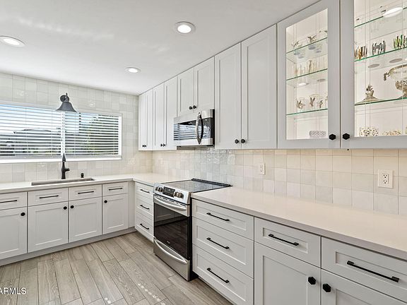 COMPLETELY REMODELED THREE BEDROOM VILLA MONTEREY HOME! *High Demand Scottsdale Location *Historic Designation, 55+ Community *3 Bedroom and 3 Full Bathrooms *Corner home with just one neighbor *Everything in this home has been updated *See upgrade list under documents tab *All dual pane windows, new main water line, plumbing lines, new HVAC in 2019, roof recoated in 2024, upgraded 50 gallon hot water heater Extensive attention to detail in every room and features *White-on-white kitchen cabinets with glass doors, 42'' uppers, quartz counters, under cabinet lighting, matching Stainless Steel Frigidaire appliance package *Furniture available by separate contract *Spacious living, family room with Arcadia doors to amazing patio and backyard *Flooring is plank tile in downstairs and luxury vinyl on upper level *Amazing primary suite with designer lighting, completely reconfigured closet/draw system, walk-in shower with rain shower head, fully upgraded vanity, lighting, toilet *Hall bathroom completely upgraded as well *Upstairs loft style suite can be used as bedroom, office, or den and features large picture window, luxury vinyl plank flooring, huge walk-in closet and completely remodeled en-suite bathroom *Fabulous laundry room with side by side washer dryer and tons of storage *Backyard oasis with covered patio, large open area with pavers, easy care artificial turf and flowering bushes and plants *Community area features sparkling pool, spa and Clubhouse *HOA allows rentals after 18 months of ownership *Close to Old Town Scottsdale, Fashion Square Mall, Waterfront District, Shops, Galleries, Cafes, Chaparral Lake & Park, Golf Courses, Greenbelt (miles of biking & walking paths), SPRING TRAINING and much more. SEE THIS HOME TODAY!