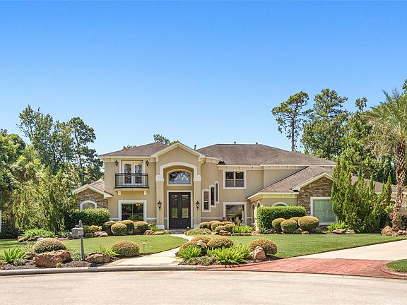 Experience resort-style living in this 6,260 sqft estate on a private 1.1-acre cul-de-sac lot within a prestigious manned-gated community. Designed for both grand entertaining & everyday comfort, the home offers 5 bedrooms, 5 full & 3 half baths. The elegant primary suite opens to the backyard & features dual closets, a spa bath w/ large jetted tub & a double shower. A chef’s kitchen w/ built-in refrigerator, double ovens, ornate hood, veggie sink, & wine grotto flows seamlessly into the family room, ideal for gatherings. Upstairs, enjoy 3 ensuite bedrooms, a spacious gameroom w/ snack bar, home theater, & finished Texas basement. Step outside to your private retreat w/ pool & spa w/ water features, pavilion w/ outdoor kitchen & bath, a pergola w/ lighting, firepit, covered patio, balcony w/ fireplace, & a whole-house Generac generator. Nestled in a secure, exclusive community, this estate offers unparalleled luxury, comfort, & lifestyle for those seeking both elegance & peace of mind.