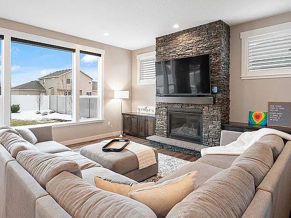 WILL OFFER 2% BUYING AGENT COMMISSION - This beautiful home was built by Danny Sullivan Homes in 2019 and is better than new. The dramatic family room features an amazing rock fireplace that soars from the floor to ceiling. The kitchen has stainless steel appliances (including Bosch dishwasher, GE Profile gas range and fridge), an island design concept, slab quartz countertops and walk-in pantry. Office/5th bedroom on main floor with glass french doors. Large master suite with freestanding tub, walk in shower, radiant floor heat, walk in closet, and double sinks. Three more bedrooms on second floor and large second living room. Back patio is perfect for relaxing or entertaining friends and family. 4-car garage, tankless hot water, central AC, and Mead schools.