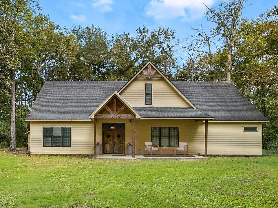 Welcome to this amazing farmhouse located on 2.47 acres in the sought after community of Timber Switch. This property showcases 4bedrooms, 4ensuite baths, 1/2 bath, media room w/built in bunk beds & wired for sound, wood flooring & a private treelined entrance. Enter through impressive double solid wood doors into a space highlighted by soaring ceilings, wood beams & large windows filtering an abundance of natural light. The staircase is wood with a sleek modern railing along the catwalk open to the downstairs. The open-concept kitchen boasts shaker cabinetry, SS appliances & space for a built-in banquette table. The hotel inspired primary suite has coffered ceilings, an ensuite bath w/designer tile choices, equipped for double sinks, oversized shower & a generous closet. Each bedroom includes a private en-suite bath. Upstairs awaits your choices of flooring & finishes including a game room, bedroom, bath & great attic storage. RV CONNECTION,LOW TAX RATE, NO HOA FEES, BELOW MCAD Value!