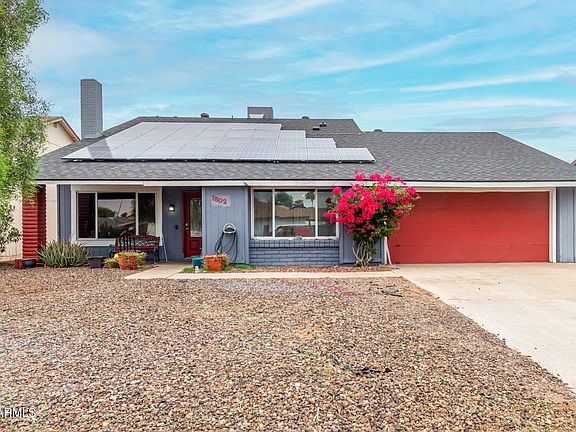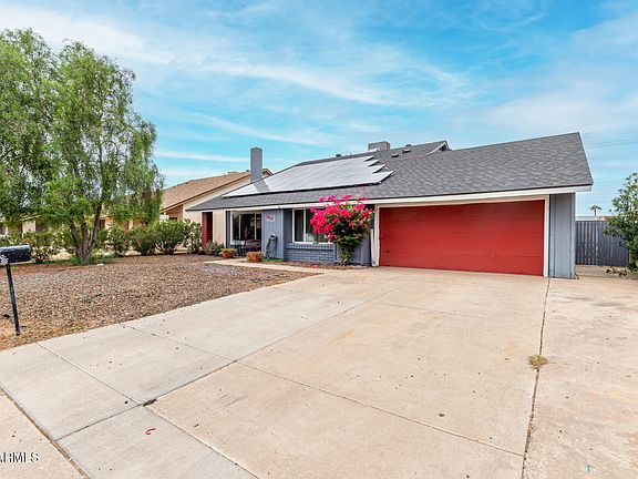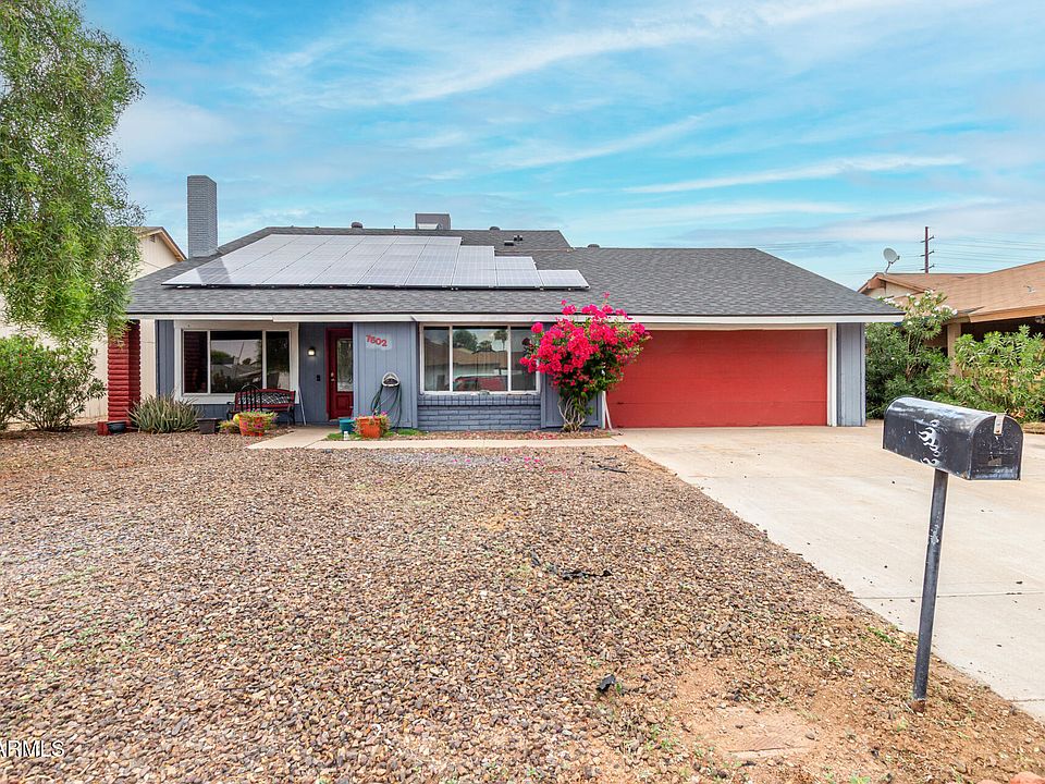 Energy efficient home! Solar panels will be paid at closing. New roof. Seize the chance to own this lovely 4-bedroom, 2-bath residence with no HOA! You're welcomed by an inviting living room with soaring ceilings, a soothing palette, durable tile flooring, and a fireplace for relaxing evenings. You'll also find a dedicated family room for intimate moments with loved ones. The kitchen comes with granite counters, crisp white cabinets, a mosaic tile backsplash, stainless steel appliances, and a peninsula for extra prep space. The main bedroom includes direct backyard access and a private bathroom for added comfort. Venture out onto the sizeable backyard, which offers a covered patio and abundant space for crafting your dream outdoor oasis. Don't miss out on this fantastic opportunity!