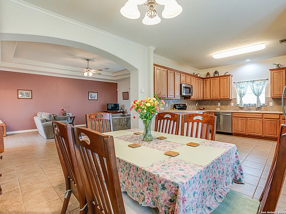 Ask your agent for a walkthrough video to see all the highly unique features that every buyer will love! From the moment you step inside, you'll be greeted by an open floor plan with high ceilings adorned with crown molding that create a welcoming and spacious atmosphere, perfect for entertaining guests or spending time with the family. The home features four well-proportioned bedrooms, including a luxurious master bedroom with a large walk-in closet and a spa-inspired ensuite bathroom, complete with a soaking tub and separate shower. The remaining bedrooms are perfect for children or guests, providing ample space and privacy. One of the standout features of this home is the oversized patio cover, providing a spacious and shaded outdoor living area. It's the perfect place for barbecues, al fresco dining, or simply enjoying the beautiful Texas weather with friends and family. The home sits on a large lot, giving you plenty of outdoor space to create your own oasis. Whether it's a vegetable garden or a play area for children, there is plenty of room to let your imagination run wild. This home also has ceramic tile throughout, a new roof, and a new hot water heater ensuring it's ready for you and your family. The sellers are moving onto their next adventure and have priced the home fairly to ensure a quick sale!