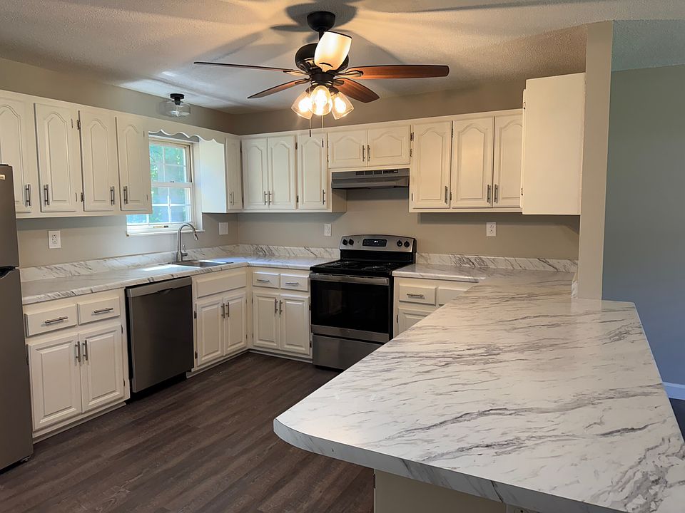 Covered porchModern updatesBrand-new waterproof flooringStainless steel appliancesFresh new light fixturesCentral heat and air