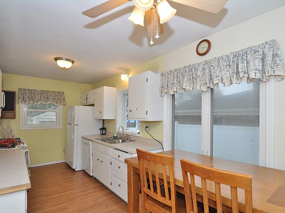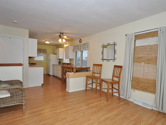 Enjoy the benefits of home ownership in this two bedroom, two full bath ranch-style home with lake access to Wind Lake! Eat-in kitchen offers excellent cabinet and countertop space, wood laminate flooring and all appliances! Large and inviting living room is great for entertaining! Two good-sized bedrooms boast natural hardwood flooring. Relax and unwind in the finished lower level rec room complete with an oversized tile bathroom with shower. Beautiful fenced-in backyard, rear deck and hot tub. Recent updates include new roof, painted exterior siding, new garage siding, and vinyl windows. One-year home warranty offered for peace of mind!