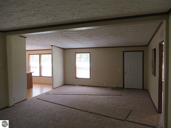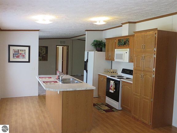 Large manufactured home just east of Kingsley Village with 10 acres of land for privacy. The remodeled house features new carpeting, exterior doors and window blinds. Island kitchen offering lots of cabinetry plus a pantry. A side entry with laundry room and includes extra storage. Property allows room for a garage and outbuilding. A great starter or vacation home near Pere Marquette State Forest with miles of state land to enjoy. Great hunting out your back door.