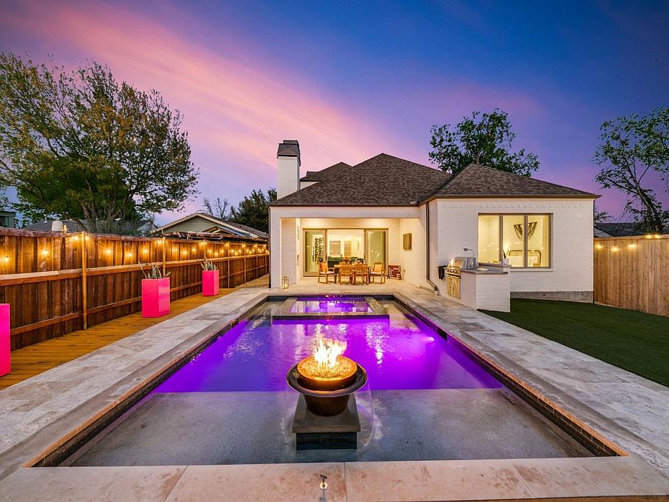Every detail was thoughtfully considered, from commercial-grade stainless steel appliances and a walk-in shower, to indoor and outdoor fireplaces and a built-in BBQ area overlooking the pool and hot tub.