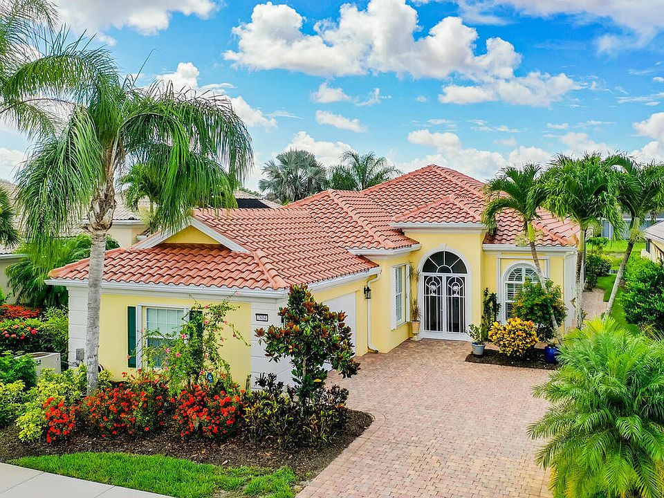 MOVE-IN and HURRICANE READY with NEW ROOF 2022, Generac GENERATOR, and ELECTRIC and ACCORDION HURRICANE SHUTTERS. Includes a Home-Tech HOME WARRANTY, SCREENED IN FRONT ENTRANCE and backyard SOUTHERN EXPOSURE. The spacious Master Bedroom has CALIFORNIA CLOSET upgrades, while the master bath combines separate vanities and toilets with a soaking tub and shared shower. Guest bathroom has WALK-IN SHOWER upgrade. RESURFACED and RETILED HEATED POOL, RESURFACED LANAI DECK, NEW POOL FILTER AND PUMP and large RETRACTABLE AWNING on lanai. QUARTZITE KITCHEN COUNTERS, PULL-OUT DRAWERS in kitchen, PLANTATION SHUTTERS, CROWN MOLDING, REPAINTED EXTERIOR, HOT WATER HEATER 2020, CENTRAL VACUUM, OUTDOOR LIGHTING UPGRADES, EXTRA STORAGE in garage, and EXTRA BUILT IN CABINETS in laundry room. Verona Walk residents enjoy a range of fantastic amenities, including a resort-style swimming pool, lap pool, 24 hour guarded gate entry, a gas station, post office, restaurant, ice cream shop, exercise center, tennis and pickle ball courts, basketball court, community center, playground, car wash, library, card rooms, bocci, shuffle board, computer center, ballroom, and walking/biking paths.
