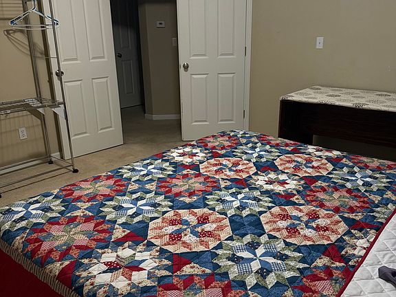 We have a large furnished room available for rent located in Lacey. The room is equipped with a bed, a desk, and a wardrobe. Shared areas include a modern kitchen, a clean bathroom, and a spacious living room.