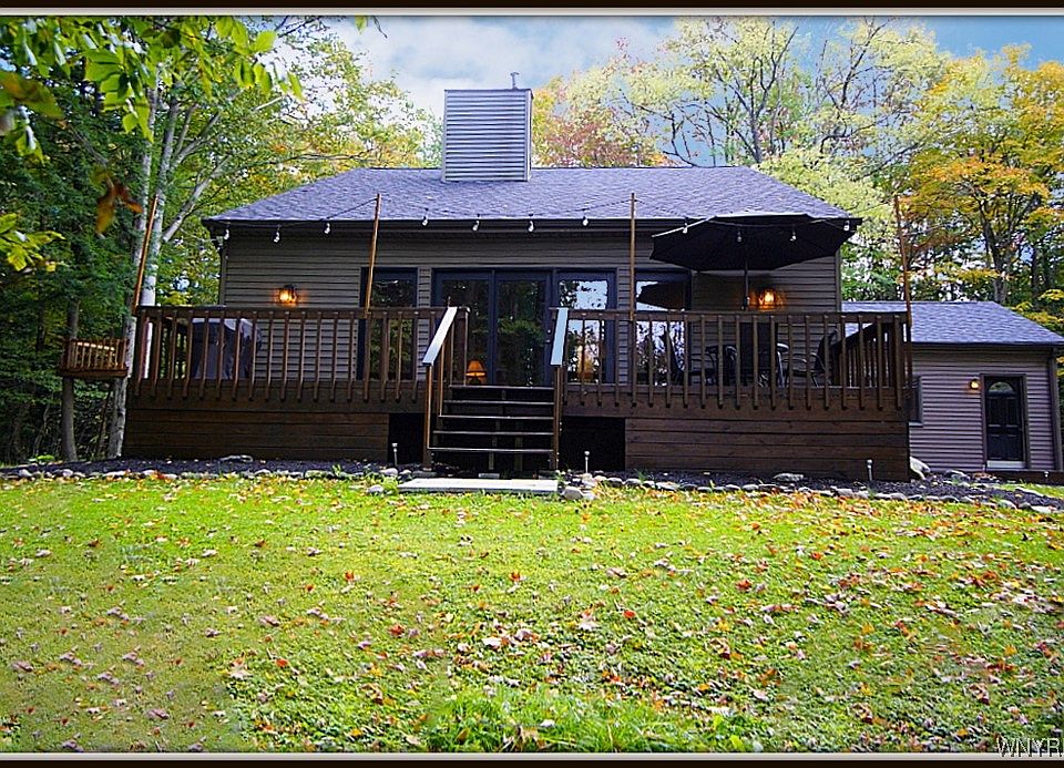Nearly two wooded acres embrace this charming country home. Built in 1993. Minutes from Buffalo Ski Club, Kissing Bridge and Village of Orchard Park. Short distance to snowmobile trails. Orchard Park School District. 3 bedrooms w/large closets, 2 full baths, vaulted living/dining room with wall of windows leading to deck. 1st floor laundry, roof/gutters/furnace and hot water tank 2 yrs old, public water, gas service, 2 car garage with huge parking area.