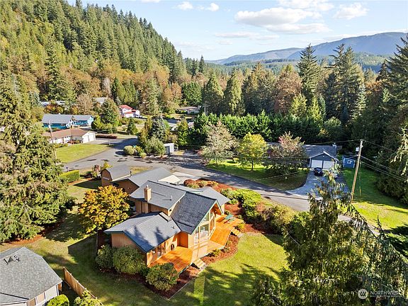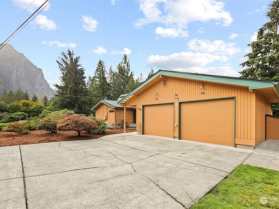 This North Bend gem offers stunning views of majestic Mt. Si from living room, dining room and backyard. Property also features a creek running through backyard providing serenity sounds to enjoy with mature landscaping and wildlife. This custom built 2 story, 3 bedroom,3 bath home has many upgraded features: New roof (2022);new upgraded front and back deck spaces (2024);spacious kitchen w/SS appliances, cozy fireplace, wood beam vaulted ceilings, and natural wood trim throughout. Added bonus: large detached garage with covered walkway to house, and additional shed for gardening equipment/mower. Close to shopping, amenities AND Skiing! Make this homestead your next home/getaway and enjoy all the PNW and Snoqualmie area has to offer!