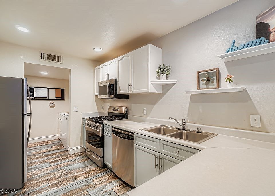 Modern updates include a dedicated EV charger outlet, adding value and convenience for electric vehicle owners. Community amenities include a pool, gym, clubhouse, and walking trails. Perfect as a great starter home or investment property. Conveniently located just a minute from Starbucks and EOS Fitness, with easy access to Summerlin Parkway and nearby shopping, dining, and parks.