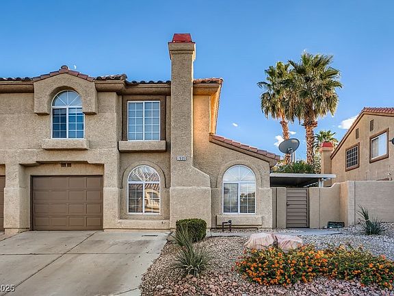Charming 3-bed, 2.5-bath townhome in the desirable Buena Vista community of Summerlin North. Features a spacious living room with fireplace, wood-look flooring, and a bright kitchen with direct access to a private courtyard with patio cover and above-ground spa. Upstairs, the primary suite includes a large walk-in closet, while two generously sized secondary bedrooms provide flexible space for guests, family, or a home office. The home also features a convenient upstairs laundry area with cabinetry, an attached 1-car garage with overhead storage, and all appliances included.
