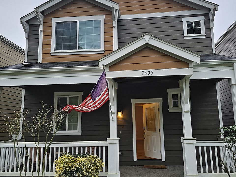 Welcome home! Hard surface flooring throughout the open concept main level living space, with gas fireplace in the Living rm & an island counter with eating bar in the Kitchen w/stainless appliances, granite counters, & walk-in pantry. Upstairs hosts three bedrooms including Primary Suite w/private bath & walk-in closet. The perfect postage stamp lot! HOA maintains the front lawn and landscaping, while you get to enjoy your private, fully fenced patio space, ready for summertime grilling. Fabulous location with all amenities at your fingertips: just one street over from Glacier Park, offering park space, sports court, and playground. Moments to Hawks Prairie Golf Course, dining & shopping, and only 15mins to JBLM.