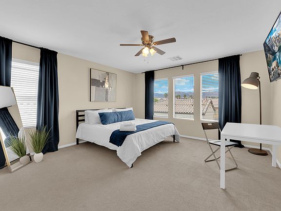 Welcome to your turnkey home-away-from-home in Centennial Hills Las Vegas, just 30 minutes from Creech Air Force Base and near major hospitals like Centennial Hills Medical Center and Mountain View. This updated and professionally cleaned home features four fully furnished bedrooms, three full bathrooms, two living spaces, and a dedicated work-from-home setup perfect for traveling professionals, remote workers, or families in transition.