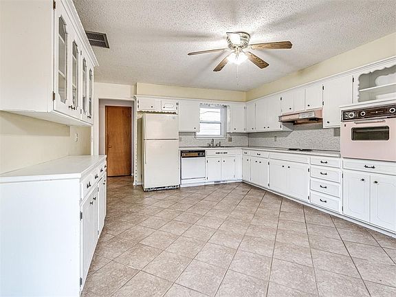 This isn't just a house; it's a portal to a simpler time, waiting for you to add your own chapter to its story. Step into this 1960s gem where mid-century charm meets modern comfort. As you cross the threshold, you're greeted by a cozy living area (15x24 ft), the heart of this inviting space is a classic fireplace, perfect for those chilly Oklahoma evenings. But the true star of this home is the kitchen – a pastel dream that's stayed true to its roots. The original pale pink built-in oven and cooktop stand proud, ready to whip up your favorite recipes with a dash of vintage flair. This culinary time capsule offers ample counter space and storage, proving that retro can indeed be functional. Two comfortable bedrooms provide restful retreats, the primary bedroom is 12x17 ft. The bathrooms, while updated for modern convenience, retain that classic 60s charm. Step outside to your own large covered and screened-in back patio, it beckons for year-round enjoyment. Along the west side of the house, a beautiful Rose of Sharon garden adds a touch of timeless beauty to your outdoor space. Practicality hasn't been forgotten in this blast from the past. An extra-large driveway and a 2 car side-load garage ensure ample parking for your vehicles and guests. A safe room/storm shelter offers peace of mind with modern protection while a convenient outdoor shed provides extra storage for all your needs. Location is key, and this property doesn't disappoint. Enjoy the luxury of being within walking distance to Ripper Park and less than a mile from Lake Overholsefor for fishing, boating, and picnicking – activities that never go out of style. And for families looking towards the future while cherishing the past, you'll be pleased to know this timeless gem is situated in the sought-after Putnam City School District. Don't let this opportunity slip into history. Schedule your viewing today and fall in love with 7605 NW 28th Terrace where yesterday's charm meets today's lifestyle!