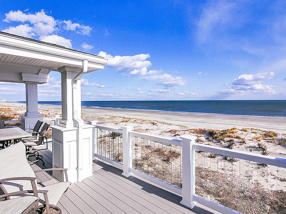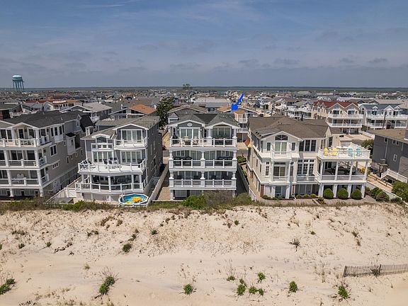 Experience extraordinary beachfront living in this custom-designed luxury home, offering sweeping coastline views from Avalon to Atlantic City. Spanning over 4,400 square feet of refined elegance, this residence epitomizes seaside sophistication. Picture-perfect sunrises over the Atlantic Ocean can be enjoyed from all three beachfront decks and many interior spaces. Nestled in Sea Isle City’s highly sought-after Southend, this property is situated directly on one of the area’s finest beaches and conveniently located just across the bridge to Avalon. Designed with both beauty and functionality in mind, this single-family home boasts three levels of living space above a thoughtfully planned ground level. The lower level includes abundant off-street parking, a large storage room, an enclosed outdoor shower, and an oceanside patio. A four-stop elevator ensures effortless access to every floor. The first level welcomes you with a beautifully detailed foyer, two oceanside bedrooms featuring ensuite bathrooms and private decks with breathtaking beach views, and a third room currently used as a den/office. This versatile room includes a private deck, custom built-ins, and a pull-out sofa to function as a 7th bedroom. Just off the main foyer, you will find a custom bathroom complete with a double vanity, shower, and soaking tub - perfect for unwinding after a day at the beach. This area also includes a laundry with built-in storage, a refrigerator, and an ice cooler. The second floor is highlighted by a stunning primary suite with a private covered oceanside deck. This suite includes sleeping and living areas, a spa-like bathroom with dual vanities, walk-in closets, separate commode rooms, and a custom-tiled walk-in shower. There is also two additional bedrooms featuring ensuite bathrooms and private decks, as well as a second laundry room. The top level is the centerpiece of this home, designed for gatherings and the ultimate beachfront lifestyle. The expansive great room seamlessly connects the chef’s kitchen, dining area, and living room, all framed by panoramic ocean views. An oceanside deck invites you to enjoy the sea breeze, with partial coverage for all-weather enjoyment. The chef’s kitchen is a dream, complete with a 10-foot center island, Viking double wall ovens, a gas cooktop, custom cabinetry, quartzite countertops, and a social bar perfect for entertaining. This level also includes a walk-in pantry with a wine cooler, a powder room, and an additional bedroom with an ensuite bathroom. A west-facing covered deck provides the ideal place to relax and enjoy sunset views. Additional features include hardwood floors throughout, twin on-demand hot water heaters, a multi-zone HVAC system with two new AC condensers, and beautifully landscaped paver driveways and walkways. Custom-built in 2015 and recently refurnished by an interior designer, this home exudes impeccable craftsmanship, premium finishes, and timeless style. This turnkey property is being sold mostly furnished, offering the ultimate opportunity to move in and enjoy Spring & Summer 2025 in one of Southern New Jersey’s most exquisite beachfront homes. Contact us today to schedule your private tour of this extraordinary coastal retreat.