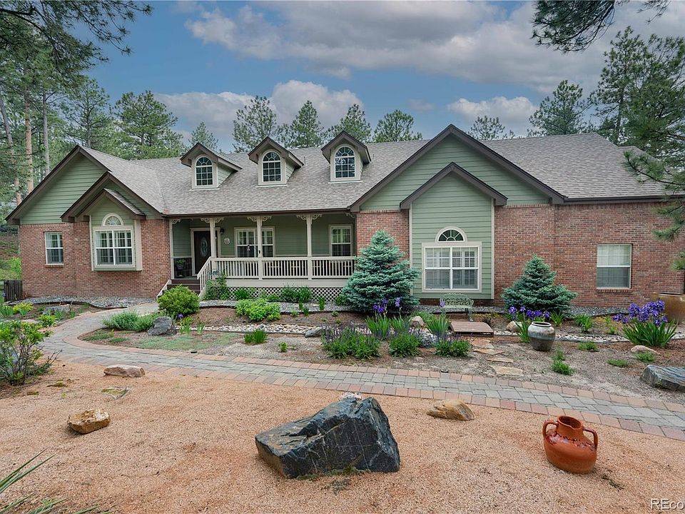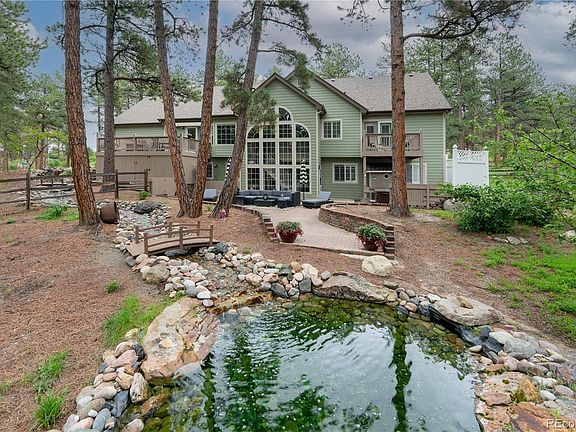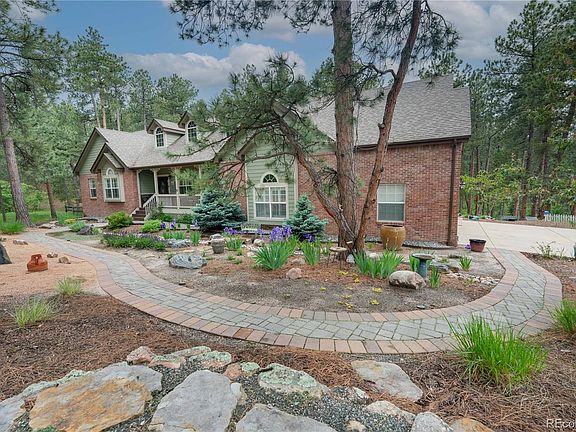 This IS Colorado living! Remarkable Custom Colorado DREAM HOME in coveted Bear Dance / Sterling Pointe!  Situated on an expansive 2.3 acre lot this property offers breathtaking wooded pines and all the privacy you could ever wish for as well as opportunity for expansion to add.... a workshop.?. Extensive professional landscaping in features a backyard private oasis including a stunning/tranquil year round water feature, two large decks (one with a retractable awning & the other directly off your primary suite).  From your walkout you will find a spacious stone patio that can double as a basketball court.  Relax from a long day in your hot tub or the outdoor sauna (or both). All this set amongst large beautiful, well maintained pine trees. Step inside from the charming covered front porch and you'll find gleaming cherry hardwoods, updated kitchen with stainless steel appliances, granite countertops, 3 fireplaces, a custom stone wall, and plantation shutters. The lower level finished walkout includes a guest suite with private fireplace and huge walk-in closet, a large family room, a separate gaming room, an exercise room with impact flooring. Also on the lower level you will find 2 more bedrooms and 2 full bathrooms. The attached 4 car garage (1 tandem) gives you plenty of storage options.
