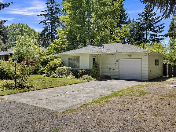 Accepting back up offers. Contact Broker for details. Live the Mid-Century Dream in a Sought-After Garden Home Location! Nestled in on a tranquil dead-end street that culminates at the picturesque Garden Home Park, this captivating mid-century one-level home offers an exceptional living experience with a perfect blend of original charm and modern amenities. Set on an oversized .26-acre dividable lot, this well-maintained gem is perfect for those who value both indoor and outdoor living.This charming home features 2 bedrooms and 1 bath, with original hardwood floors and built-ins that exude timeless character. The cozy living area is anchored by a warm wood stove, creating a welcoming ambiance. The single-car garage provides ample storage space, adding to the home's functionality.The expansive backyard is a true haven for nature lovers and pet owners alike. It includes a fully fenced back section perfect for pets, a garden area with pear, apple, and prune trees, as well as flourishing raspberry bushes. The charming chicken coop and tool shed offer additional versatility, while the covered entertaining area is perfect for hosting gatherings with family and friends.This property is a gardener's delight, offering ample space to cultivate your green thumb. The dividable lot provides endless possibilities for expansion or creating your dream outdoor oasis. The location couldn't be more ideal. Garden Home Park, an eight-acre haven offering recreational activities like tennis and summer concerts, alongside soccer fields, a baseball diamond, and paved trails, is just a short walk away. Enjoy the convenience of nearby coffee shops, pet stores, Trader Joe's, Washington Square, Multnomah Village, and easy access to Highway 217, ensuring seamless living in this idyllic neighborhood.