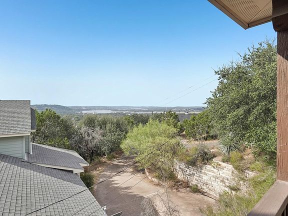 Nestled in the trees with beautiful Lake Travis views from the wraparound front porch. This custom-built home by Hometown Builders offers a unique floorplan. The kitchen, dining area and family room are open and bright, accented with Plantation Shutters and a large wood-burning fireplace. The primary bedroom/bath is on the main level along with the laundry room and a half-bath. Upstairs you will discover two large secondary bedrooms and a full bath. The extra surprise is the artist studio/office/workshop that is separate from the main house and has water and electricity. This is the perfect place for those who need a separate area for their hobbies or work space. In addition, the garage is spacious plus has a drive-thru feature to the additional parking area behind the garage - perfect for your boat or RV This home has many custom features not found in homes of tis price range. Come check it out! Owning this home also gives you access to the many amenities of the LV POA - several waterfront parks, fishing well, marina, camp grounds, pool, tennis courts, fitness centers and more. COME LIVE LIKE YOU ARE ON VACATION!