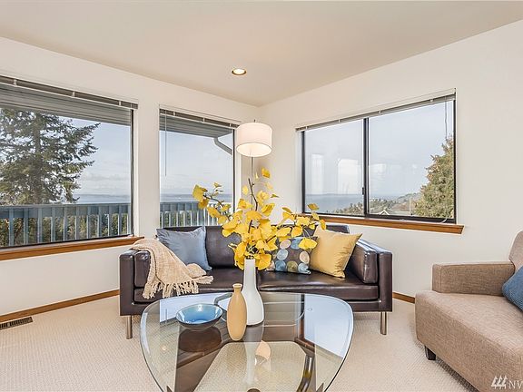 Gorgeous views greet you from all three levels of this bright, roomy & spotless home. Each floor has a bedroom & full bath. There are two fireplaces, skylights, a spacious work room, office/art room, tons of storage, large two car garage plus parking for multiple cars in the driveway. Three decks provide outdoor space on each floor to enjoy fabulous West Seattle sunsets. Fruit trees in the low maintenance yard. Restaurants & shopping in nearby Morgan Junction. On bus line 22. This is a beauty.