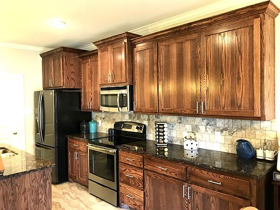 - Kitchen Details: Wood Stain Cabinets, Pantry, Microwave, Freestanding Range, Disposal, Electric, Dishwasher, Breakfast Bar, Countertops