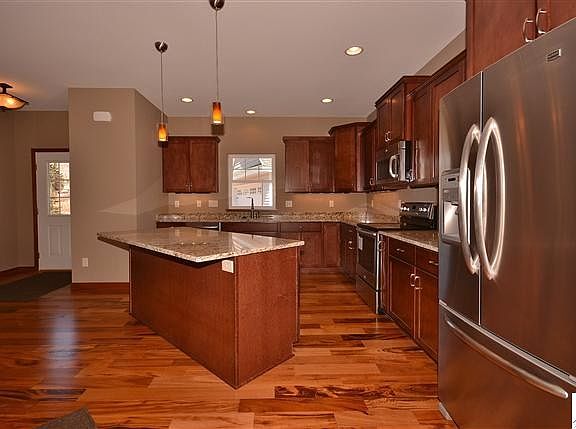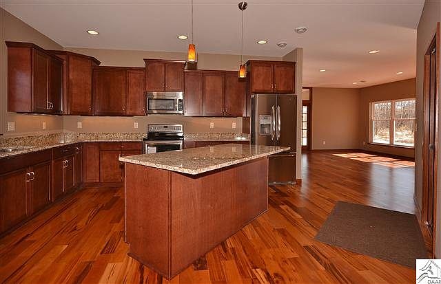 ONE LEVEL LIVING AT IT'S BEST! 1,800 sq ft 2 bedrooms plus den, 2 bathrooms, open floor plan, granite counter tops in kitchen and baths, stainless steel appliances, hardwood floors, gas fireplace and a sunroom. Large energy efficient windows keep this home bright and sunny. 21' x 23' 6" garage with pull down door for storage above. Access to the St Louis River with private dock for BayHill residents. Easy access to Munger Trail and the Western Waterfront Trail.