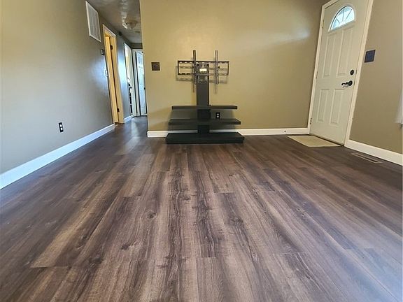 Step inside to find a bright, open layout featuring modern wood-style flooring throughout most of the home. The updated kitchen includes warm oak cabinetry, stainless steel appliances, and an eat-in dining area that’s perfect for casual meals or hosting family and friends. The dishwasher, range, and refrigerator all stay with the home, offering move-in convenience. The former garage has been thoughtfully converted into a spacious bonus room, ideal for a family room, home office, or entertainment space — providing extra flexibility for today’s lifestyle. The refreshed bathroom offers neutral tilework, updated fixtures, and a clean, modern look. Each bedroom features comfort and natural light, making the most of every square foot. Outside, enjoy a large wooden deck overlooking a fenced backyard — perfect for cookouts, gatherings, or relaxing evenings. A carport and extended driveway provide plenty of parking, while a large storage shed adds extra space for tools and outdoor gear.