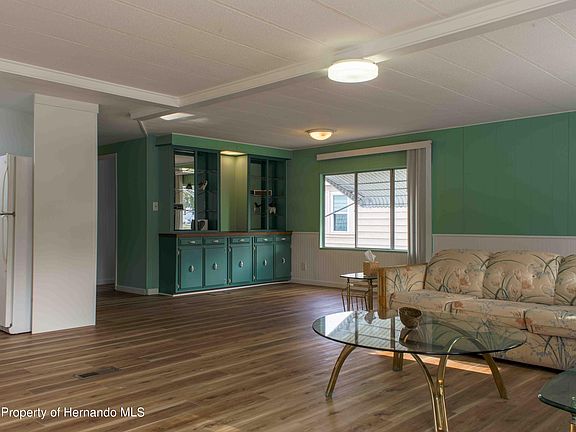 Come into the mobile home of your dreams, where you own your land! This is a 2 bedroom 2 bathroom home with a golf cart garage and an enclosed bonus sunroom area!