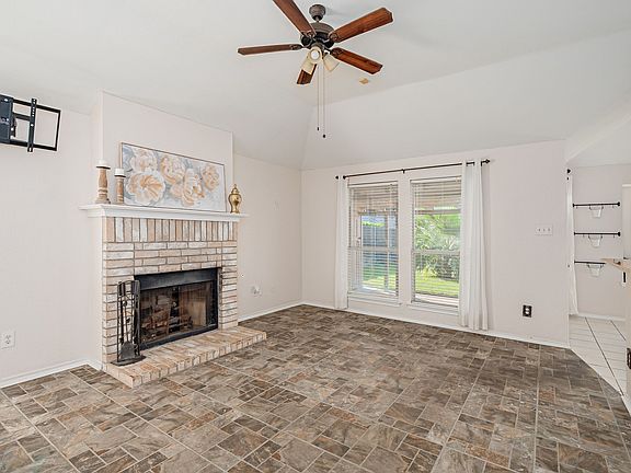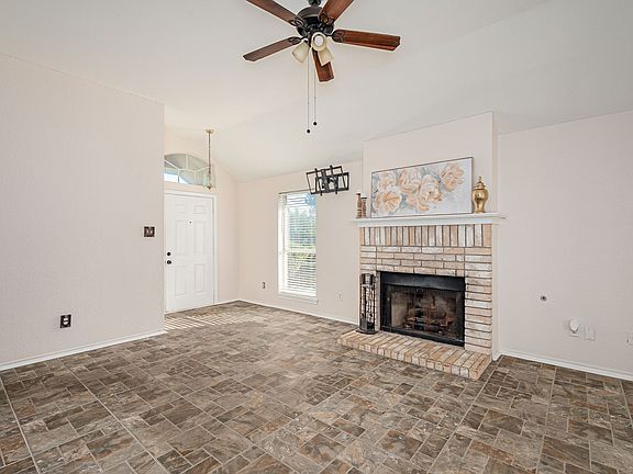 Welcome to your new home! This appealing 3-bedroom, 2-bath, single-level brick residence offers 1,297 SqFt of comfortable living. Step into the spacious living room where vaulted ceilings soar above the cozy brick fireplace with gas starter. The updated kitchen is a chef's delight, featuring Natural Stone Granite Type Counters, dark brown cabinetry, tasteful backsplash, stainless steel appliances, and a Walk-in Pantry.