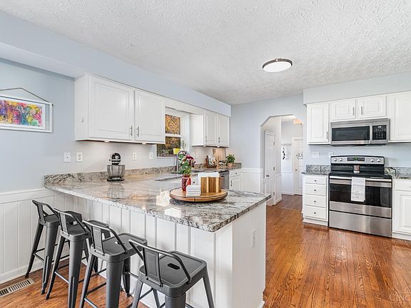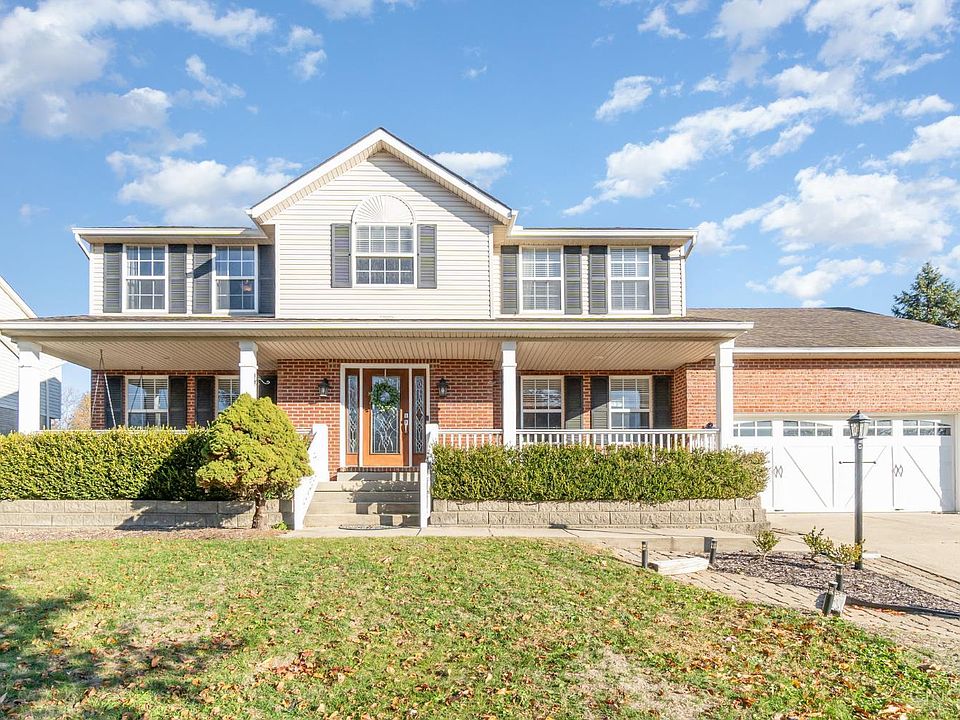 Live the lifestyle you've been dreaming of in Running Deer Estates. Mornings greeting neighbors while sipping coffee on the covered front porch, evenings curled up by the fire, and summers entertaining by the inground pool, or shooting hoops at the backyard basketball court. All of this with the freedom of NO HOA! The first floor features an open foyer, hardwoods throughout, a large great room with an additional seating area, formal dining, and a bright kitchen with granite countertops. The breakfast room opens to the deck and poolside patio, complete with a diving board, new cover, and new pump. Upstairs you'll find four bedrooms and two full baths, including a vaulted primary suite with brand new carpet and a newly enclosed ensuite with a soaking tub, separate shower, and double sinks. The finished lower level adds a 5th bedroom, full bath, family room, and workout or play space. Furnace is approximately one year old. This home delivers comfort, flexibility, and fun in every season.